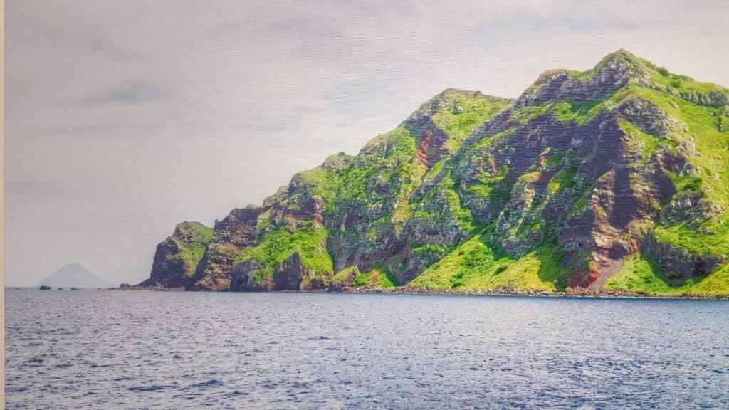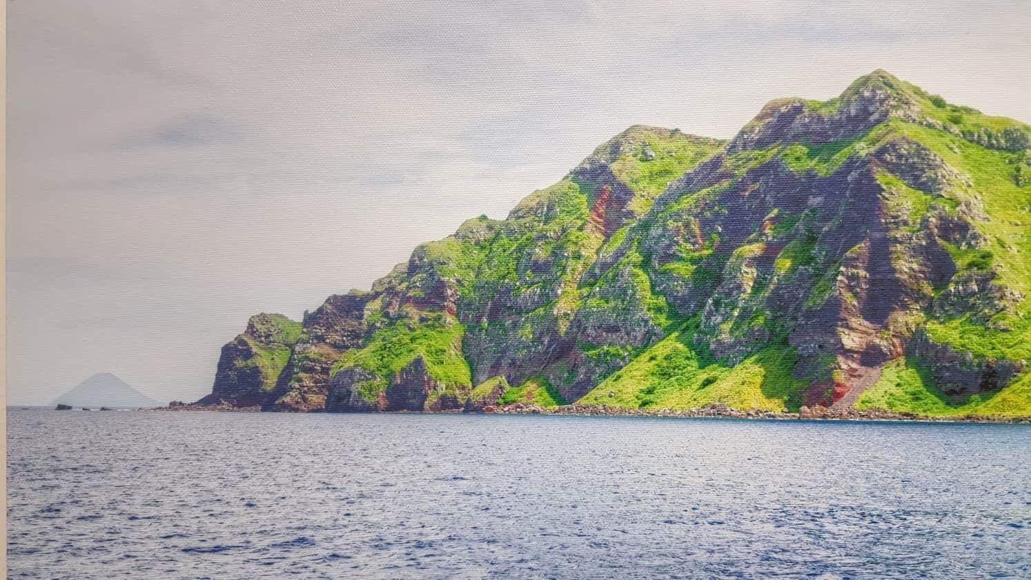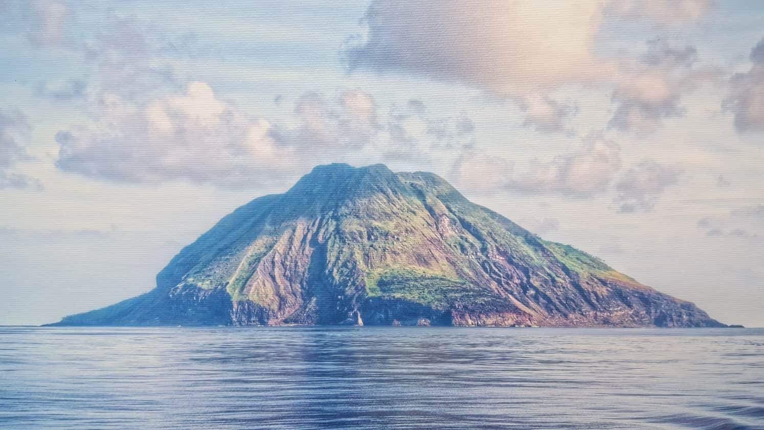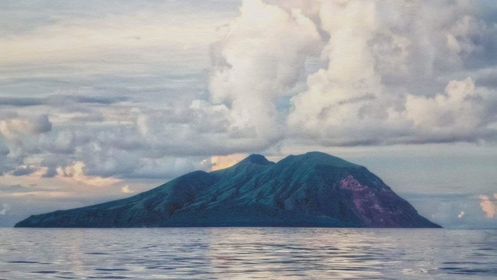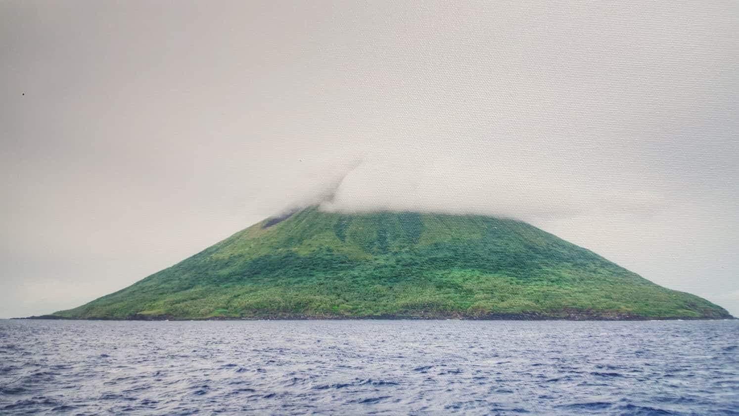Approximately 315 nautical miles north of Saipan, the island has a land area of one square mile with an active volcano, which keeps its steep slopes smooth by frequent flows of lava and ash.  The summit is crowned with white sulfur, and at times dense clouds of yellow smoke and fire emit from the crater. The north, south and west shares are precipitous and bare. The highest point on the island stands at 1,047 feet.