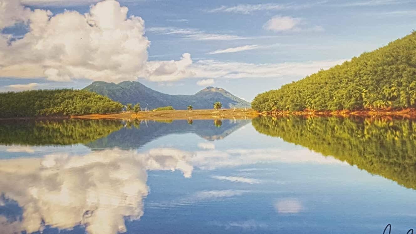The island of Anatahan is located 75 miles north of Saipan.  The island has an area of 12.5 square miles with a high point of 2,585 feet.  Anatahan is a stratovolcano that contains the largest known caldera in the Marianas.  The island’s steep slopes are furrowed by deep gorges covered by high grass. The coastline is precipitous with several landing beaches on the northern part and western shore and a small sandy beach on the southwest shore.  The wreckage of a World War II B-29 Superfortress lies on the north side edge of the crater’s flatlands.